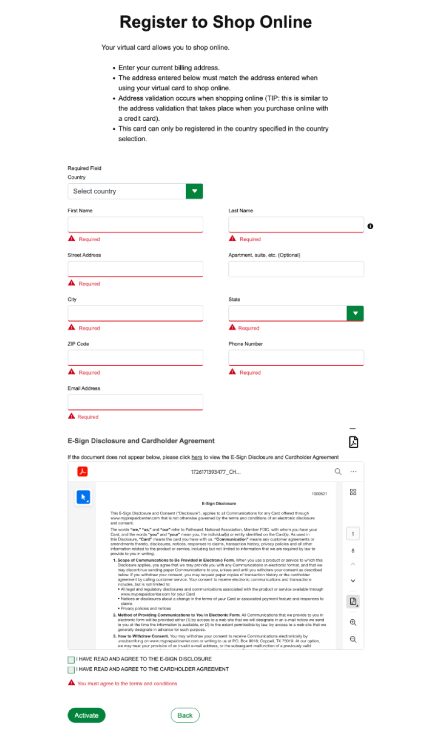 Users redeeming virtual prepaid cards were encountering a fragmented and confusing registration experience that created friction at a critical moment: accessing funds.