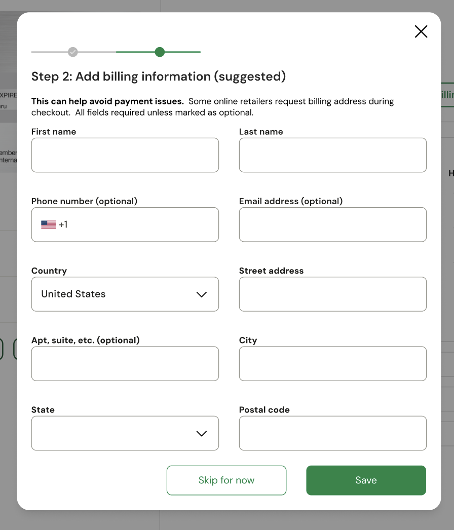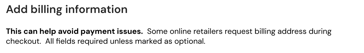 For card programs that require billing information to prevent payment issues: