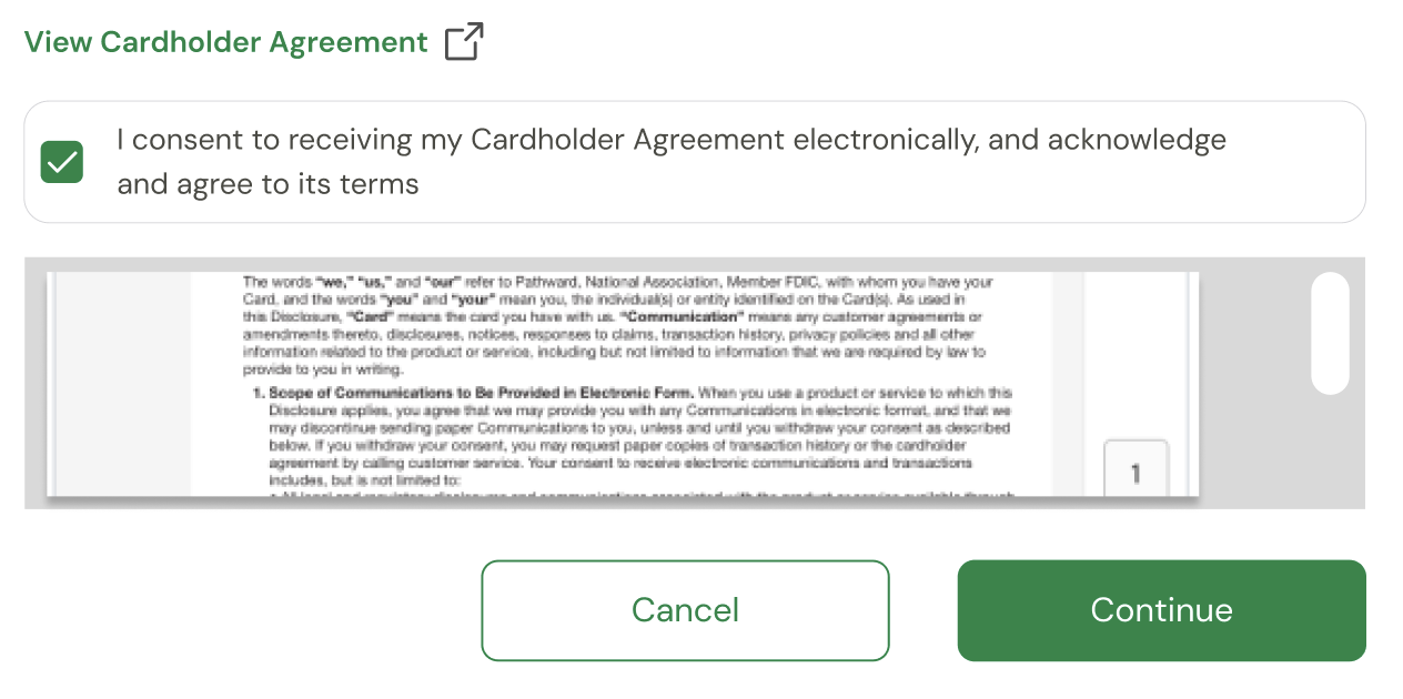 Lower risk of invalid cardholder agreement consent