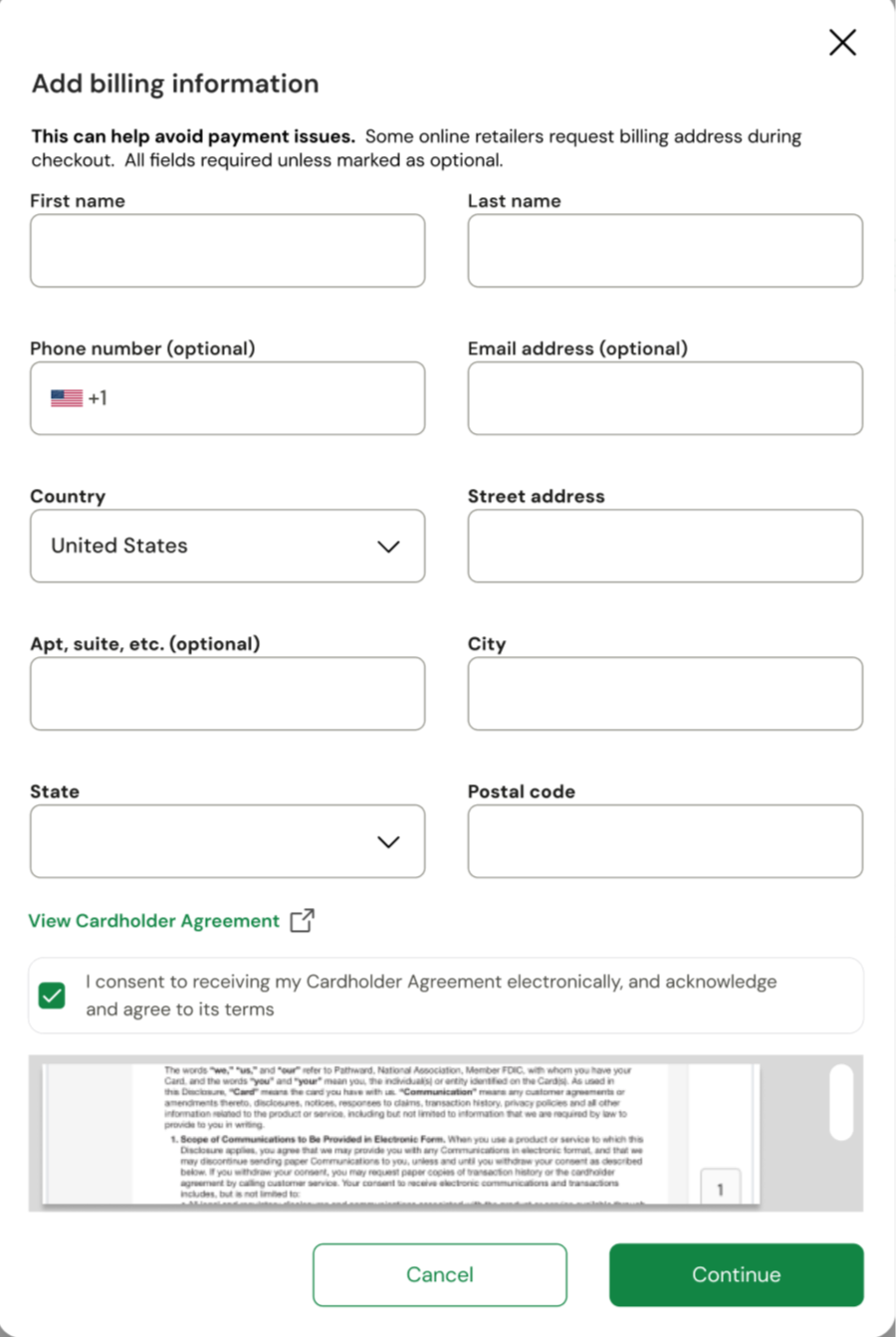 For card programs that do not require billing information: